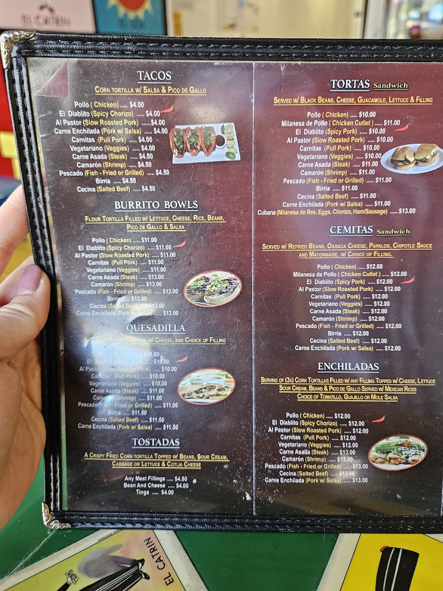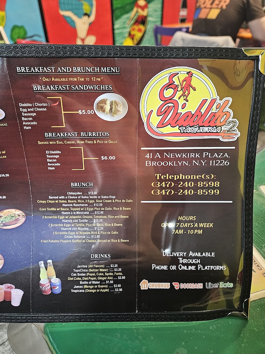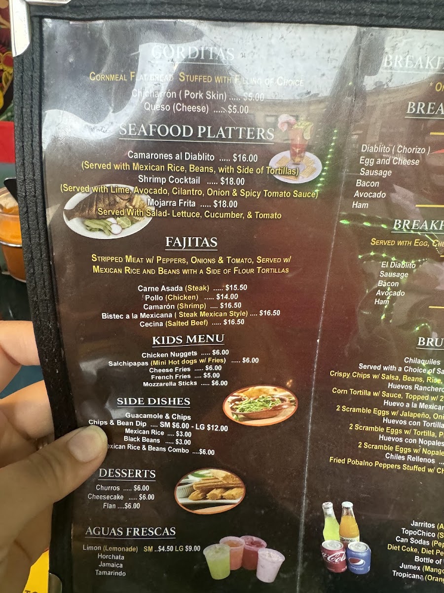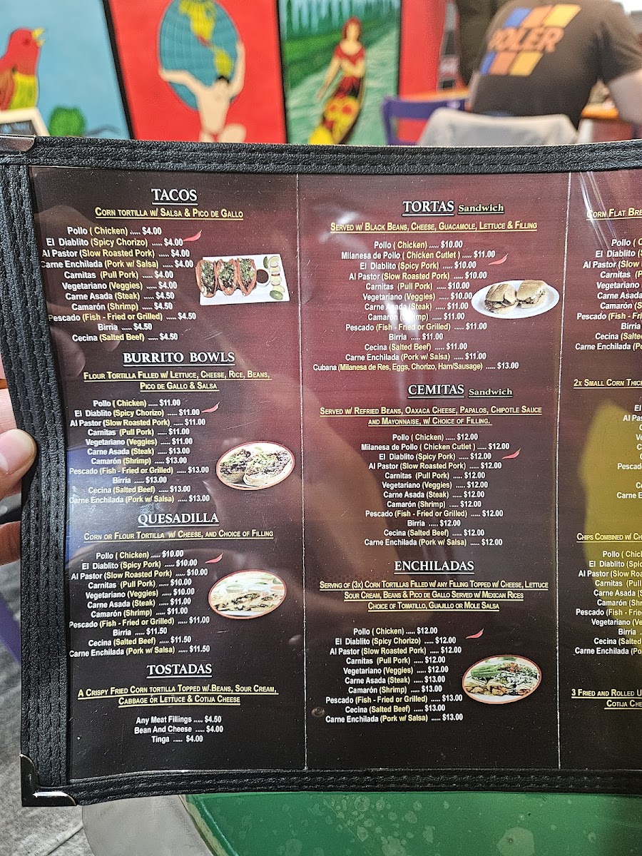 El Diablito Taqueria 2 offers a vibrant and diverse menu, perfect for any craving. For breakfast, they serve options like the Breakfast Sandwich and Breakfast Burritos, along with a flavorful El Diablito Omelette. Brunch favorites include Chilaquiles Brunch and Huevos Rancheros Brunch, with variations like Huevos Con Nopales. The tamales selection includes classic choices like Tamales De Mole and Tamales Verde, alongside Tamales De Rajas and Tamales Rojo. Tacos are a highlight, with options such as the Pollo Taco, El Diablito Taco, and Carnitas Taco, all bursting with authentic flavors. Their burritos, including the Pollo Burrito and Carnitas Burrito, are hearty and satisfying. For something more filling, the El Diablito Torta or Al Pastor Torta is a must-try, as are the Cemitas, featuring spicy chorizo or slow-roasted pork. The menu also boasts a variety of quesadillas, including the El Diablito Quesadilla and Al Pastor Quesadilla. For those craving comfort food, the Pollo Enchilada and Carne Asada Enchilada are excellent choices. You can also enjoy delicious snacks like Tostadas, Gorditas, and Sopes with various fillings. For something different, try the Huaraches or Nachos with your choice of protein, or go for crispy Flautas. The fajitas are available in chicken, steak, or shrimp, and the platters like Bistec A La Mexicana offer a generous serving of traditional Mexican fare. Seafood lovers will enjoy options like the Camarones Al Diablito or the crispy Mojarras Fritas. The kids' menu includes simple but tasty options like Kids French Fries and Kids Nuggets. To satisfy your sweet tooth, don't miss the Churros or Cheesecake, while refreshing drinks like Jarritos and Horchata pair perfectly with your meal.